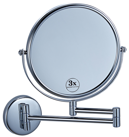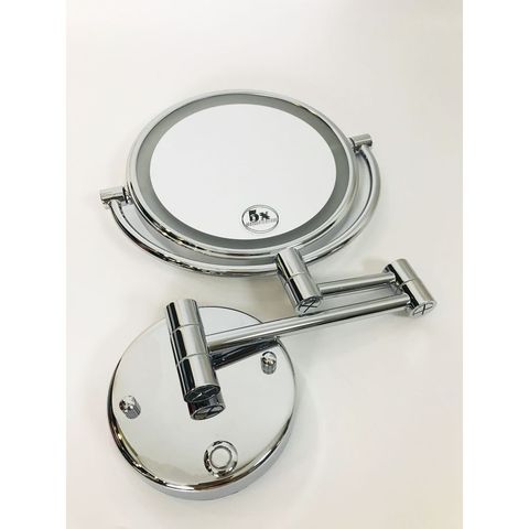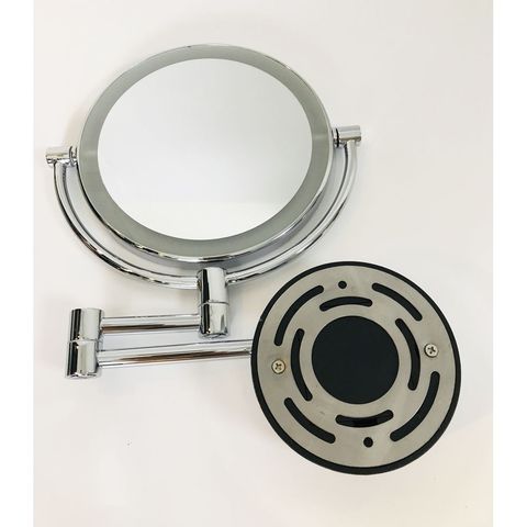 Espejo cosmético cromado montado en la pared de doble cara para Baño de hotel con interruptor táctil, espejo de maquillaje alimentado por batería
